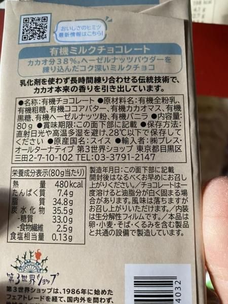 全粉乳、粗糖、ココアバター、 カカオマス、黒糖、ヘーゼルナッツ粉、バニラ