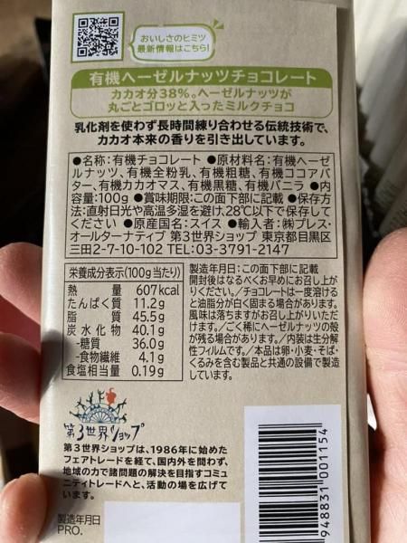 ヘーゼルナッツ、全粉乳、粗糖、ココアバター、カカオマス、黒糖、バニラ